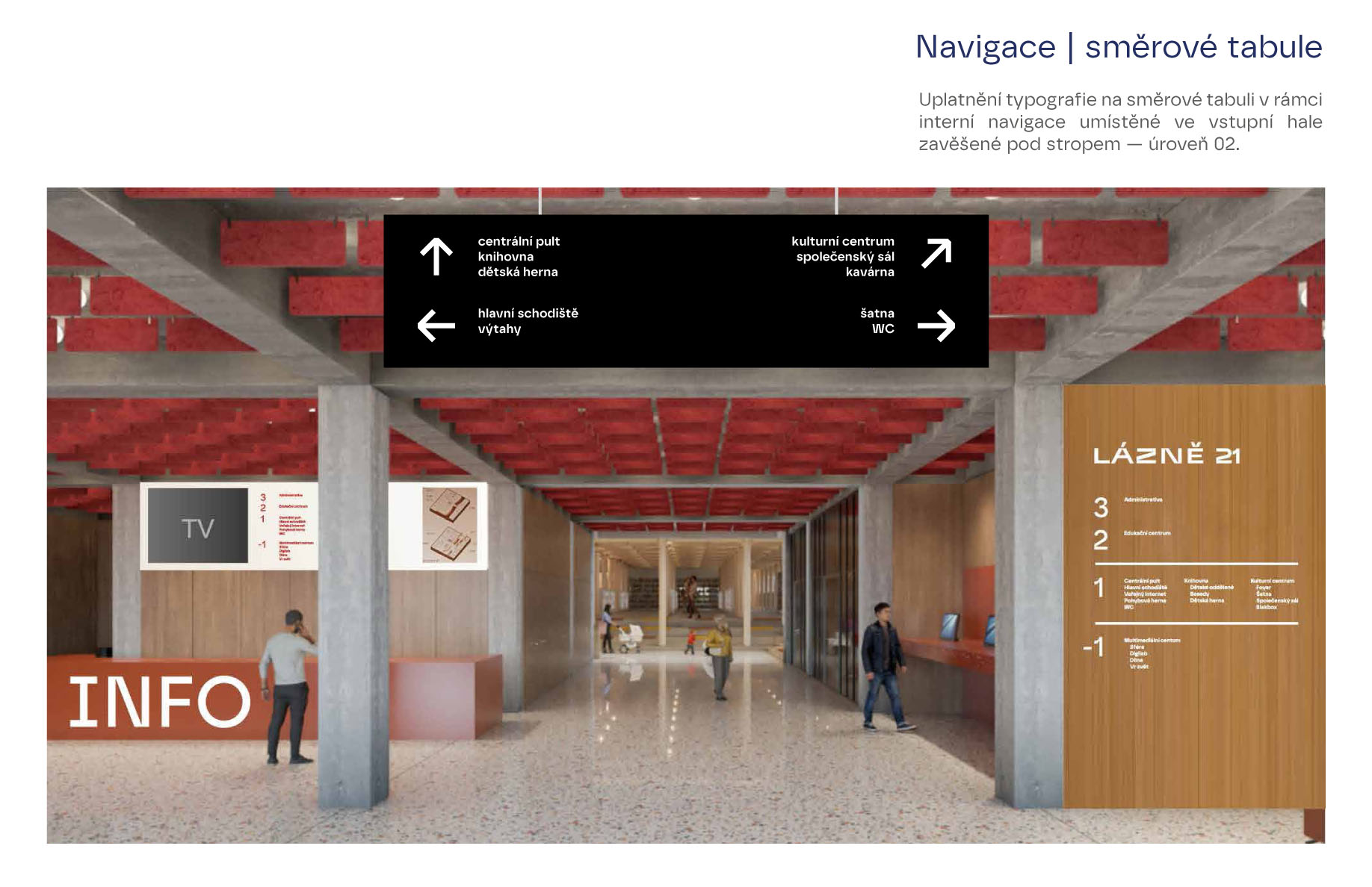 Vytvořili jsme logo a grafický styl, kompletní navigační systém v budově, návrh webu, propagačních materiálů i vizuál kampaně. Klíčová byla pro nás úzká spolupráce s architekty z ateliéru BOELE, abychom dosáhli propojení grafiky a architektury do jednoho celku.